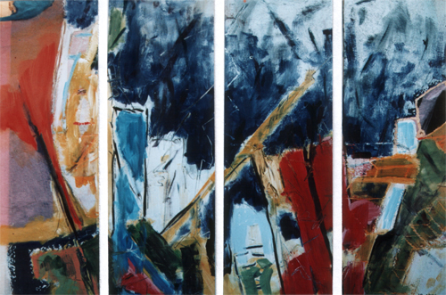 Chaos II (2001) Dispersion / Holz, 4 teilig je 30 x 90 cm