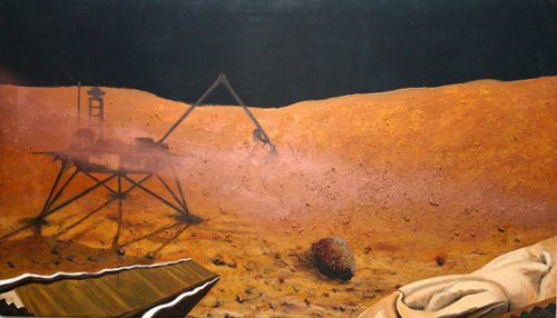 "Mars Pathfinder" (2008) Mischtechnik, schwarze Leinwand, 100x174cm