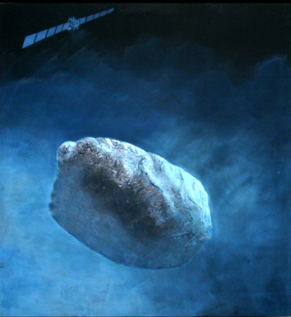 "Steins" (2008) Mischtechnik, schwarze Leinwand, 150x140cm