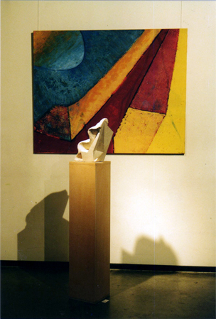 "Hartundweich" (2002) Installation Kalkstein u. Acrylbild, 250 x 150 x 250 cm